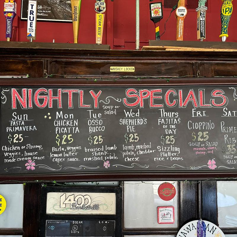 Enjoy great deals and refreshing drinks during our Happy Hours at 1400 Bar & Grill. It's the perfect time to unwind with friends, try special cocktails, and enjoy select appetizers at discounted prices. Join us and make your evenings more enjoyable.